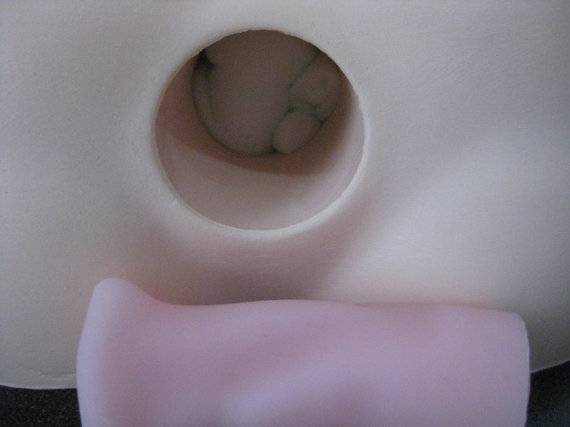 真実の口(フェラホール)を取り付けるとこんなシュールな外観です。顔以外の径が小さいのでその部分に梱包材を巻きつけてあります。フェラホールの代表格みたいな製品ですが、挿入感がきつくなるのであたかも巨根を喉に突き立てるイラマチオ的な妄想に浸れます。